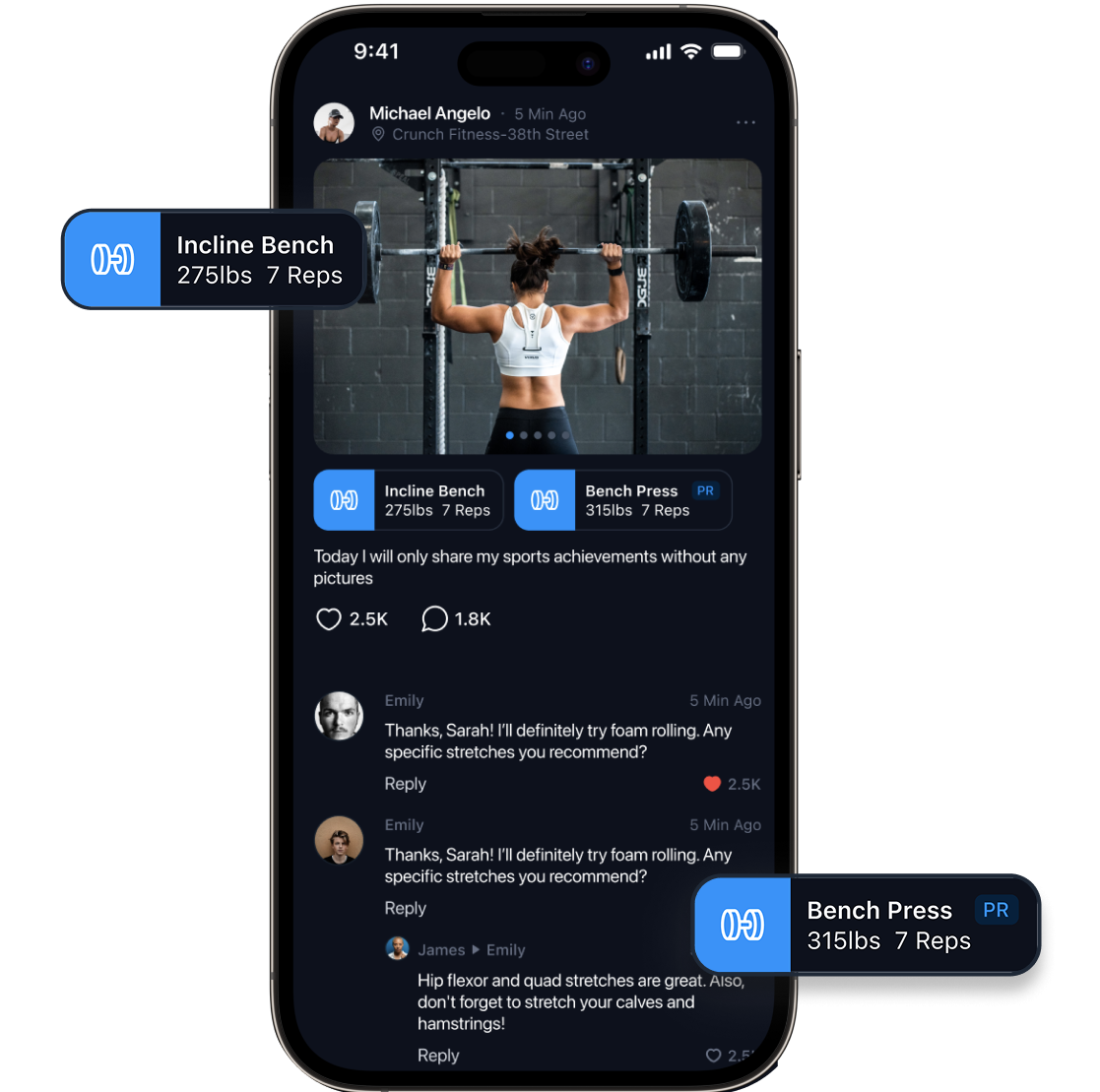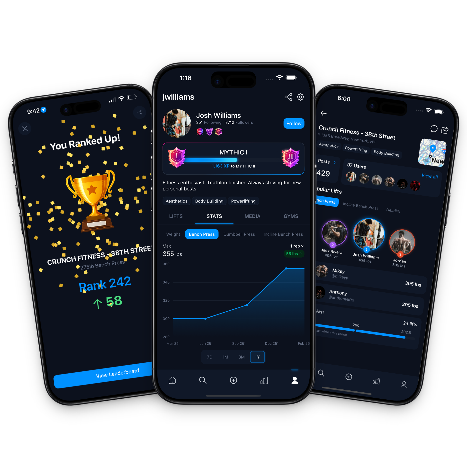 Turn your gym progress into a video game. Post at your favorite gyms and inspire lifters across the world.